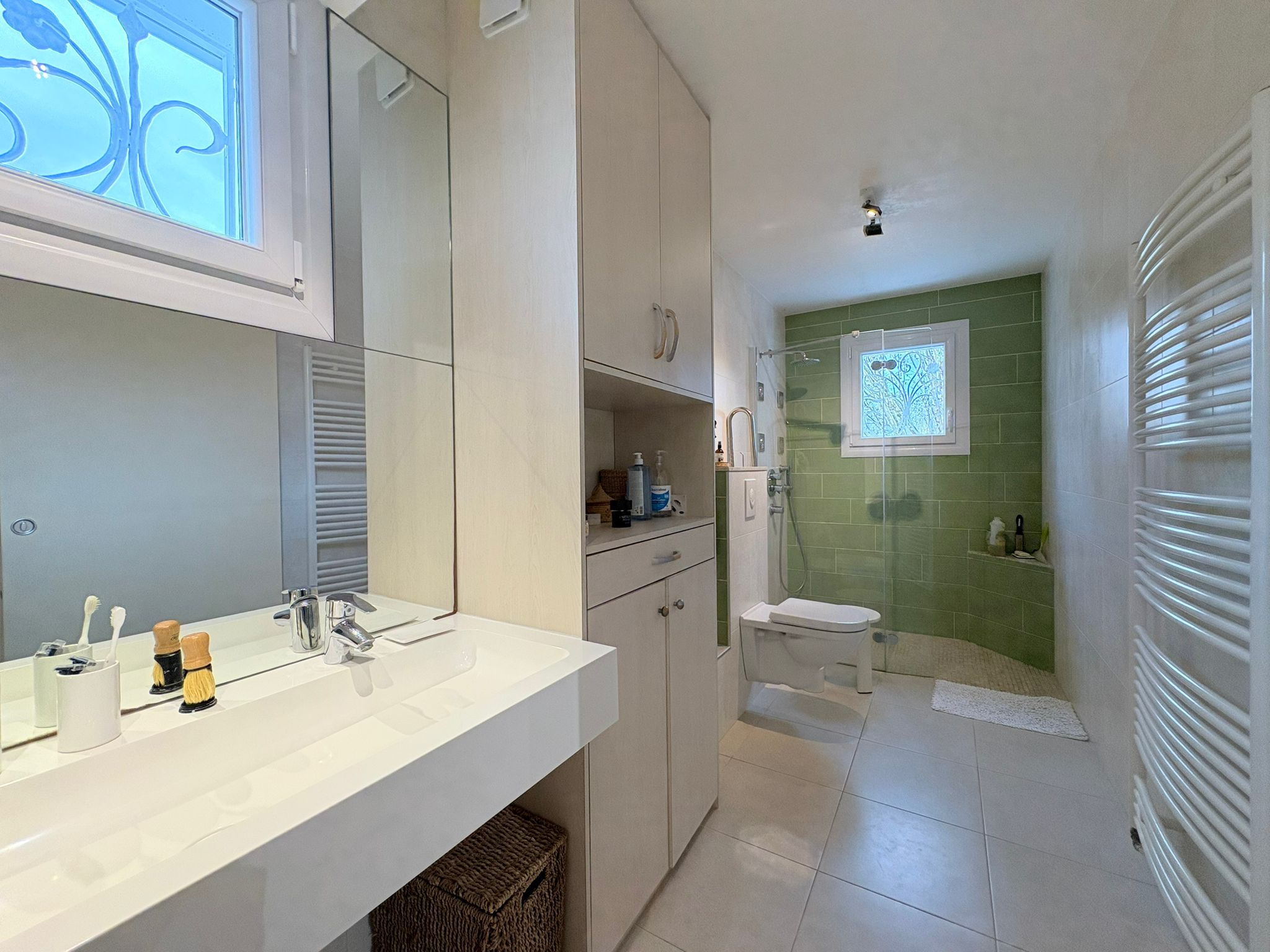 L’ensemble est implanté sur une belle parcelle de 1 721 m2, dont 520 m2 constructibles, et dispose d’un double garage de 41 m2.
