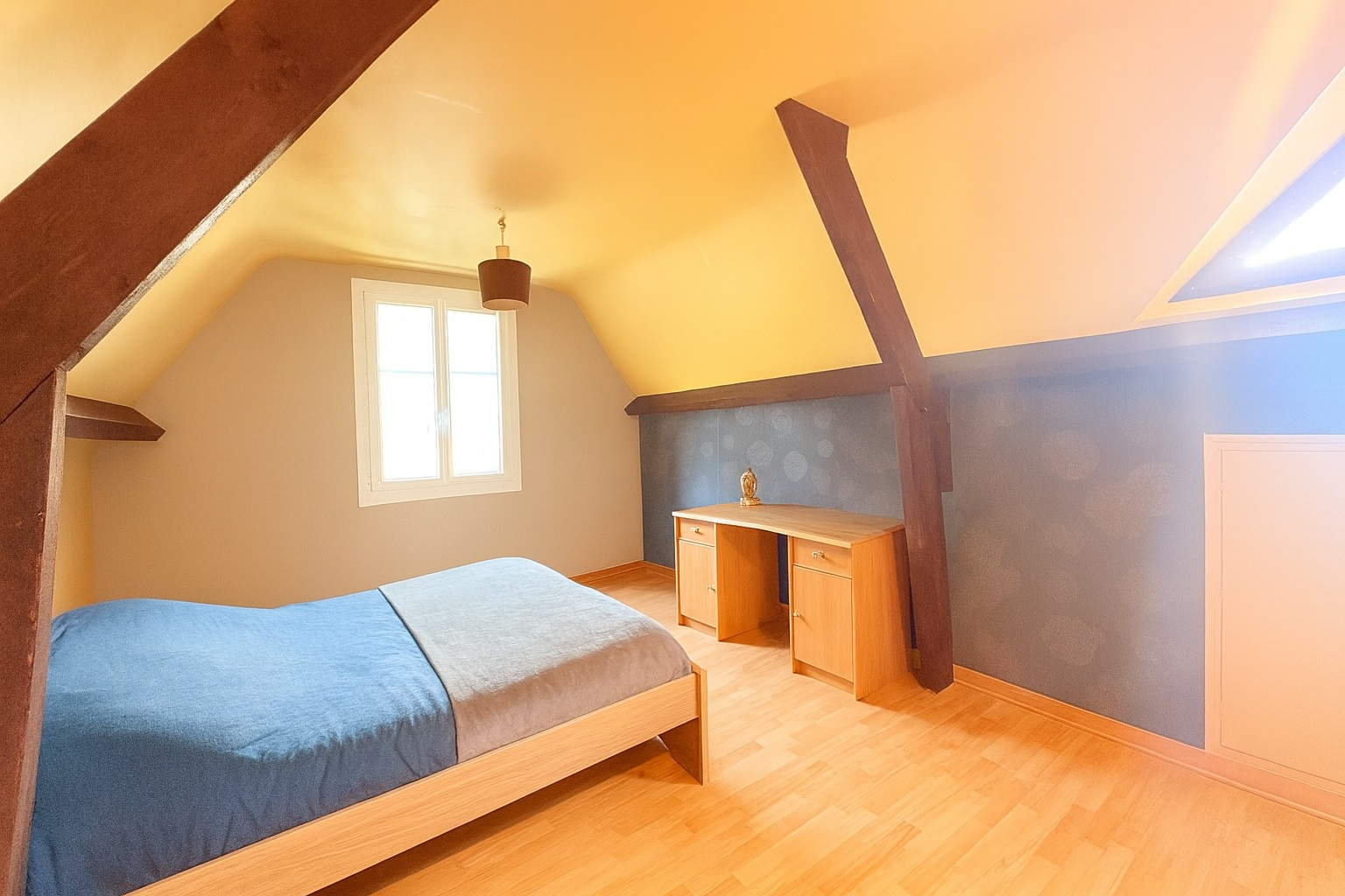 À l’étage, se trouvent deux grandes chambres, un WC et un espace de dégagement permettant l’aménagement d’une future salle d’eau ou salle de bains selon vos envies.