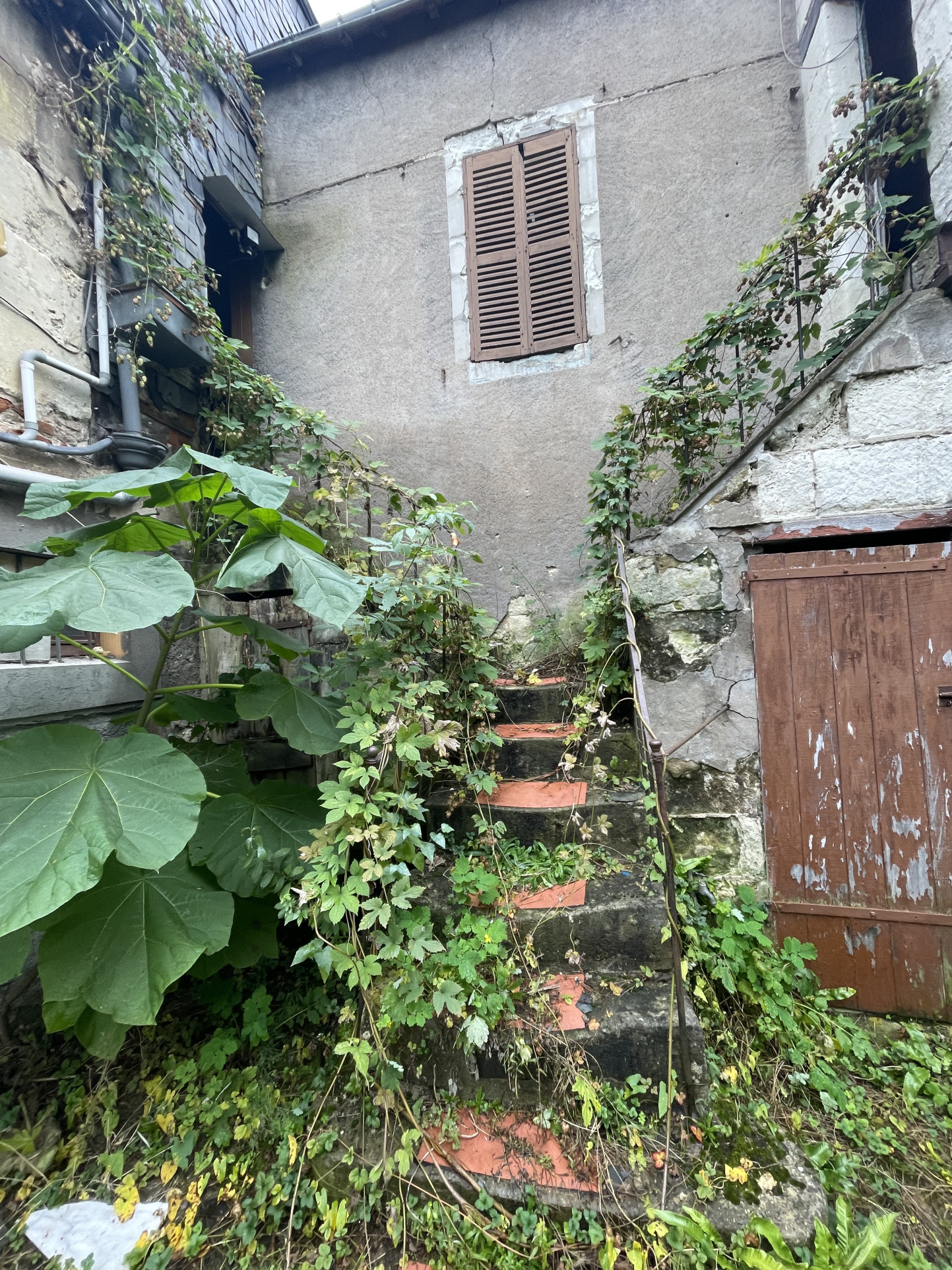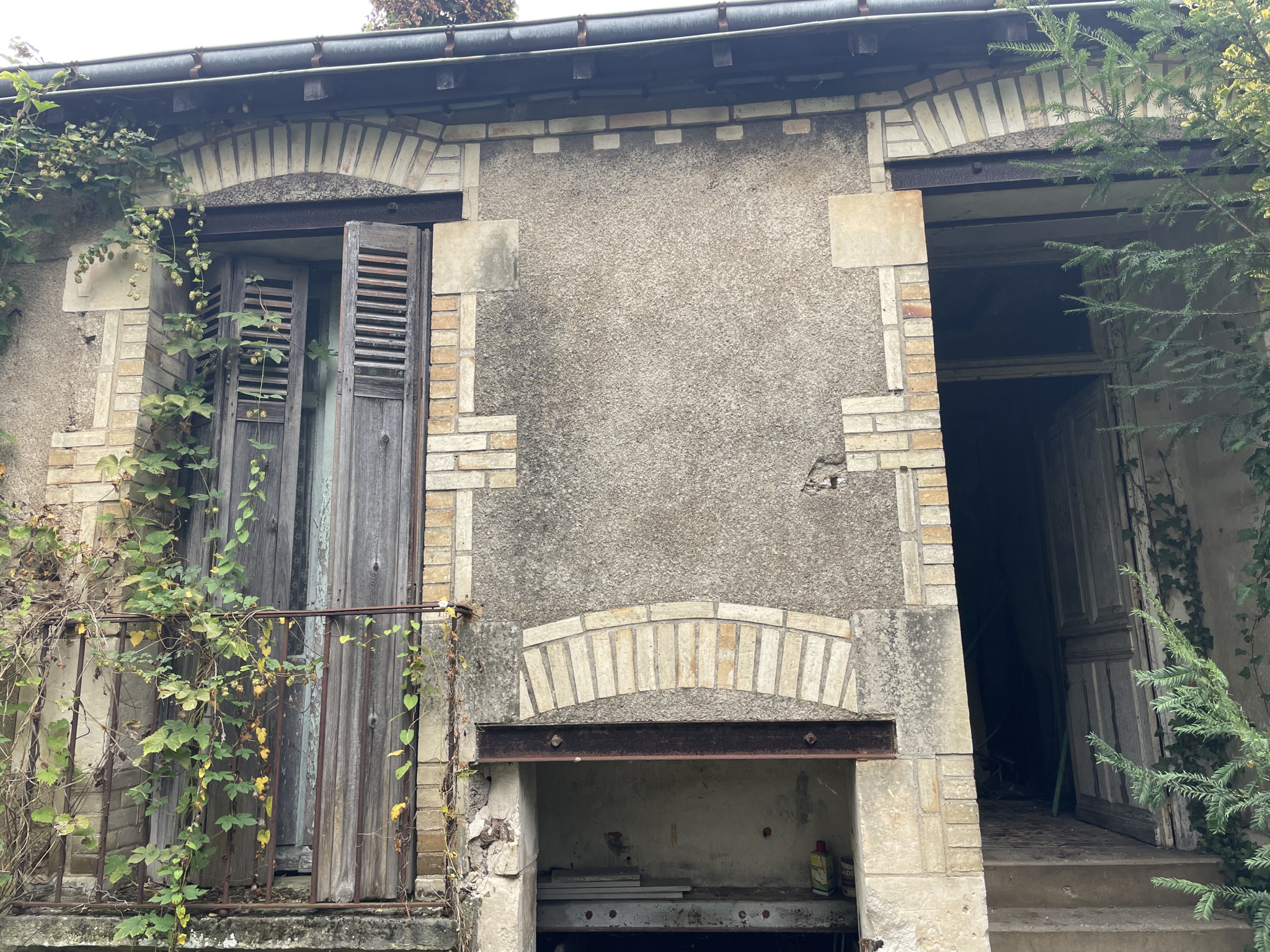 En façade sur la rue : un porche pour accéder au jardin, un local anciennement à usage commercial avec plusieurs pièces à l’étage.