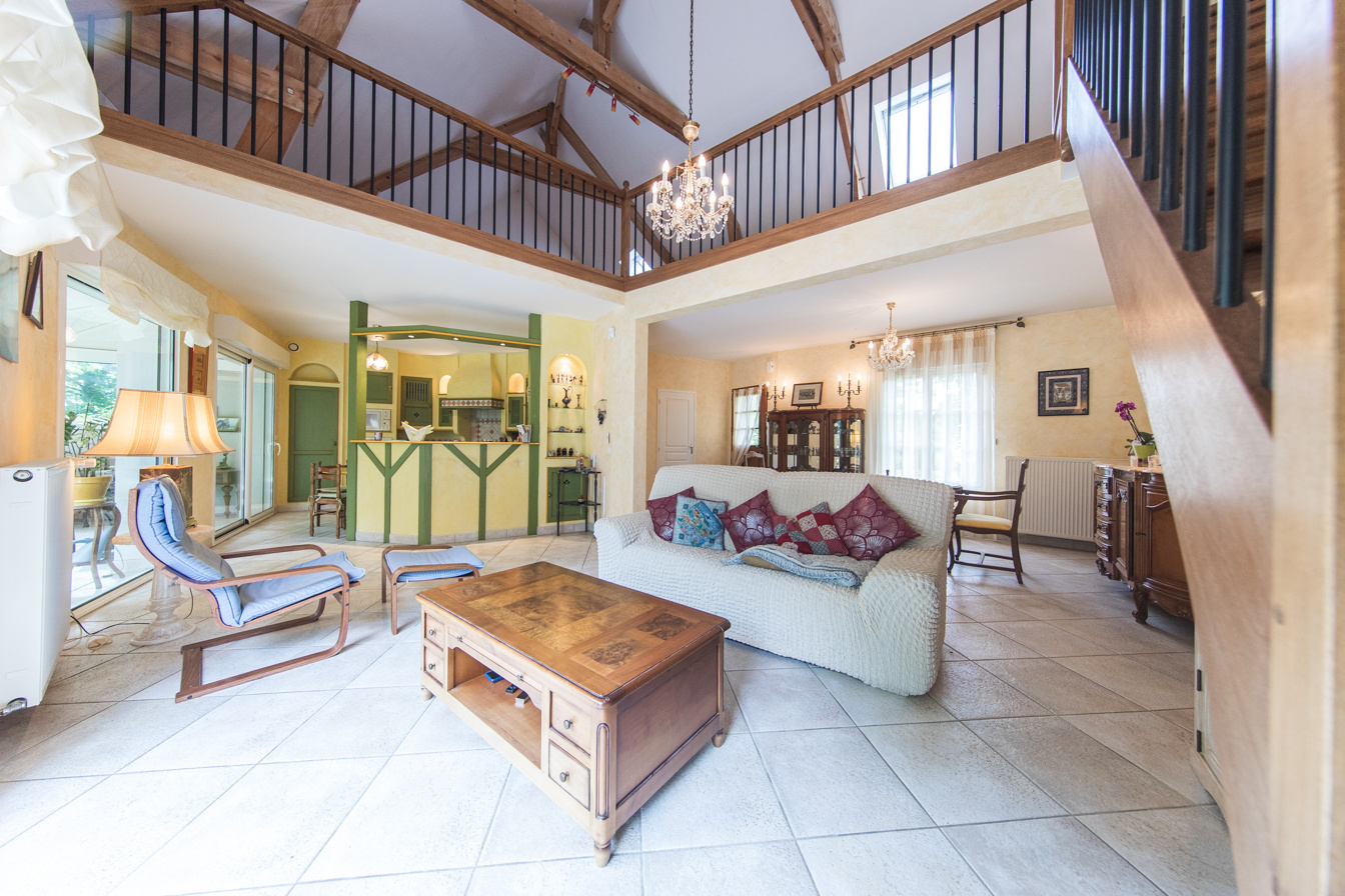 Au rez-de-chaussée, elle vous accueille avec une belle entrée (avec WC), qui dessert un beau salon-séjour (avec toit cathédrale), une cuisine aménagée et équipée donnant sur une belle véranda chauffée. Un dégagement vous mène vers une suite parentale (chambre, salle d’eau avec douche et baignoire et dressing), 2 autres chambres, un WC séparé, un bureau pouvant servir de chambre, une salle d’eau et une buanderie.