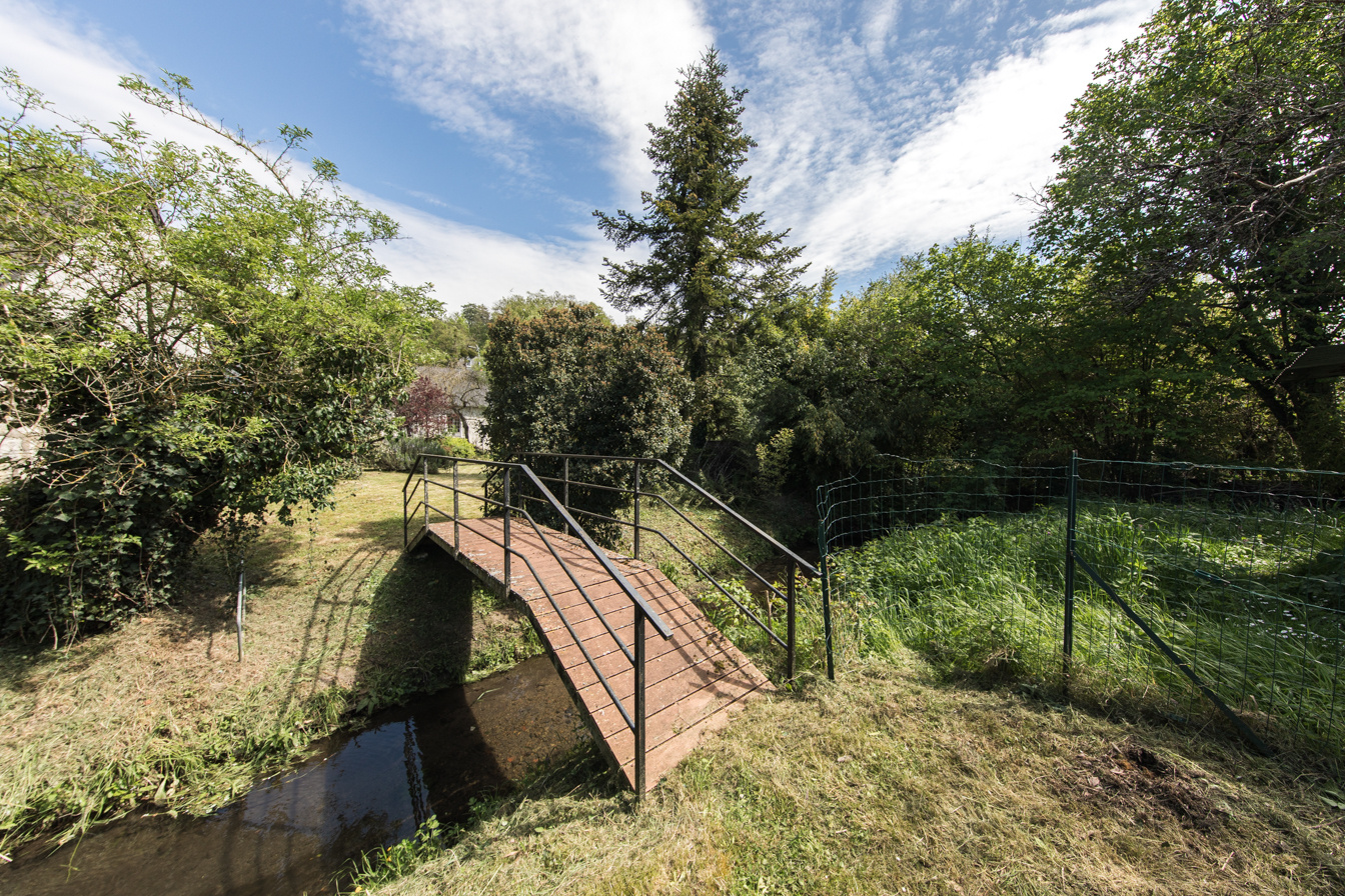 Magnifique jardin arboré avec cours d’eau. Garage. Cave.